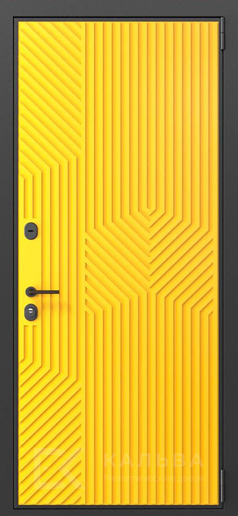 Фото «Входная дверь жёлтая рельефная геометрия внутри белая панель №201»