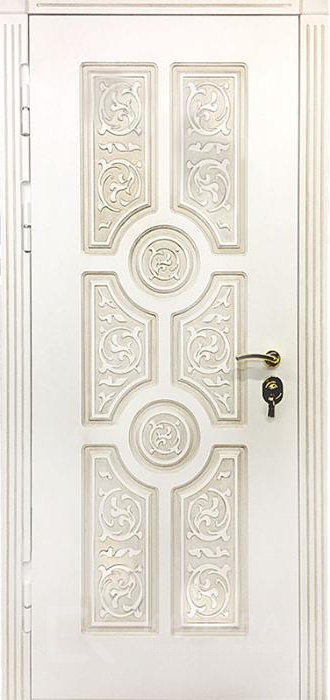 Фото «Стальная дверь графит со вставками хром белая классика внутри №397»