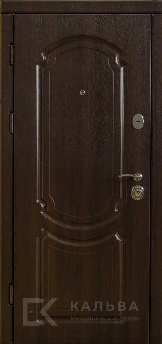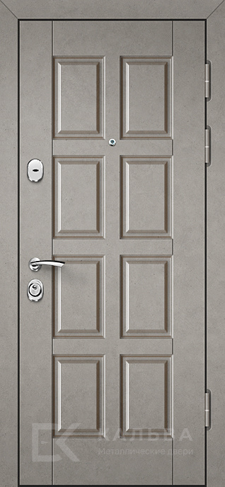 Фото «Железная дверь серый бетон панель внутри тёмный орех классика №99»